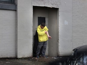 A man uses drugs on Dunlevy Avenue on Jan. 24, 2024, the same day the B.C. Coroners Service announced there were 2,511 suspected unregulated toxic drug deaths last year. PHOTO BY NICK PROCAYLO /PNG