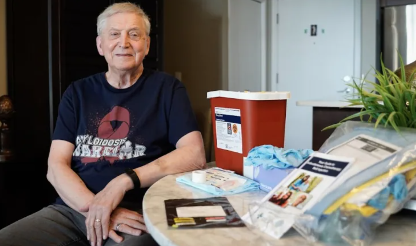 Two dozen volunteers with myeloma, a type of blood cancer, are trained by oncology nurses to give themselves a chemotherapy treatment, called bortezomib, at home.