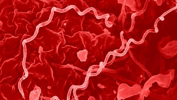 Colorized electron micrograph of Treponema pallidum, the spiral-shaped bacteria that cause syphilis. The latest federal data shows there were nearly 14,000 cases of infectious syphilis across Canada in 2022, as well as 117 instances of early congenital syphilis. (CBC News/NIAID)