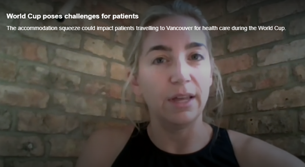 She’s worried finding affordable accommodation near VGH and St. Paul’s Hospital will be next to impossible during the month-long World Cup event in Vancouver next June and July.
