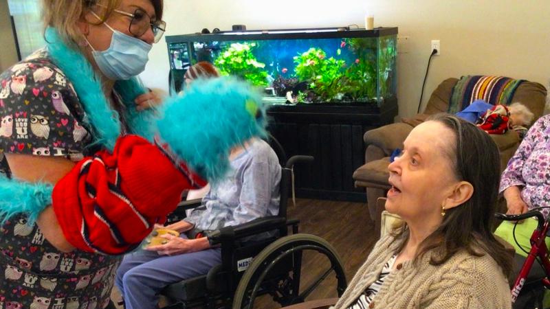 As activities director, Maltesen utilized her puppet friend named ‘Berry’ to connect and communicate with residents.