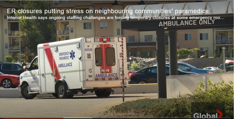 Interior Health says ongoing staffing challenges are forcing temporary closures at some emergency rooms in the region, and as Jayden Wasney reports, that’s having a direct impact on ambulance services in nearby communities as paramedics scramble to get patients to the nearest available ER.