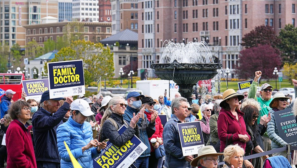 Across Canada and close to home, the message is the same. More than 2,000 people gathered on the steps of the B.C. legislature on BC Family Doctor Day to give voice to their concerns about a lack of access to family doctors and to pressure the Horgan government to take action.