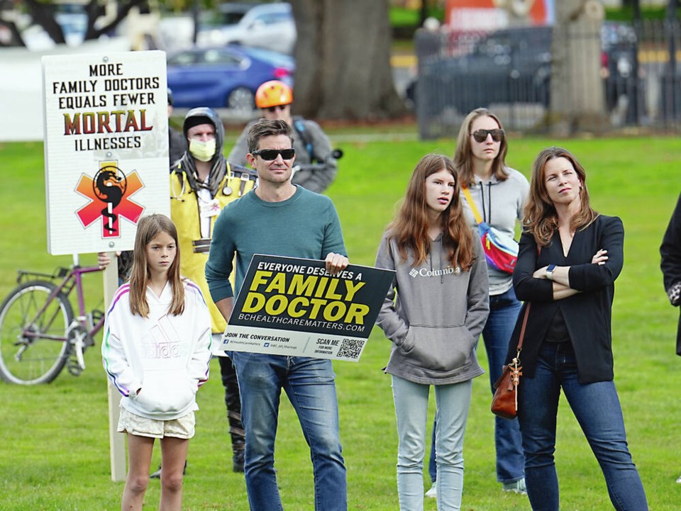 Scholtens attended a B.C. Health Care Matters rally at the B.C. legislature on Saturday to support those calling on the province to improve access to family doctors. About 200 people attended.