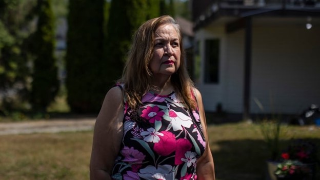 Haida elder Penny Kerrigan is pictured outside her current home in Vancouver on July 28. Kerrigan has filed a human rights complaint alleging anti-Indigenous racism during her treatment at Mills Memorial Hospital in 2020. (Ben Nelms/CBC)