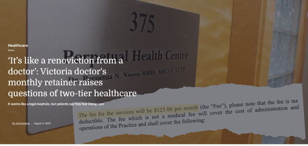A View Royal woman was confused by a letter from her doctor last week, introducing a new “operational and service fee” of $125 a month.