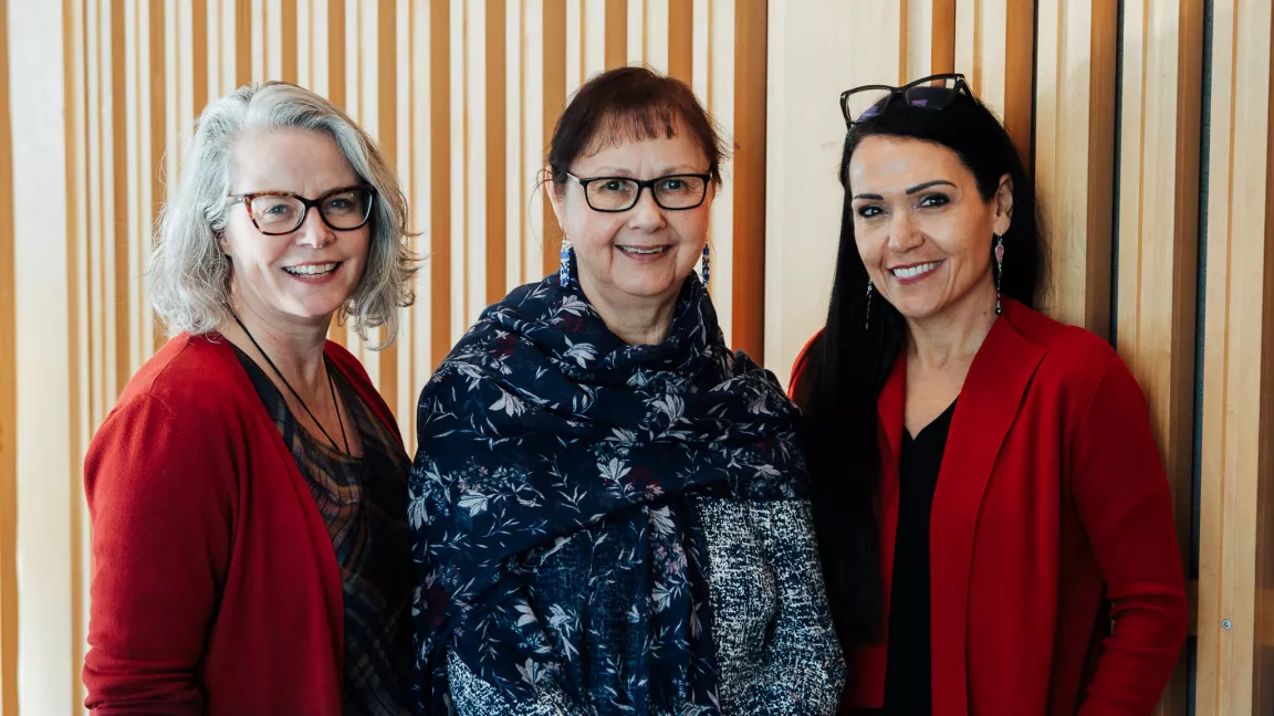 Dr. Margot Parkes, Lheidli T’enneh Elder and UNBC Chancellor Darlene McIntosh and Dr. Rheanna Robinson gather during a health research engagement initiative focused on Indigenous, rural and remote communities in northern B.C. UNBC photo